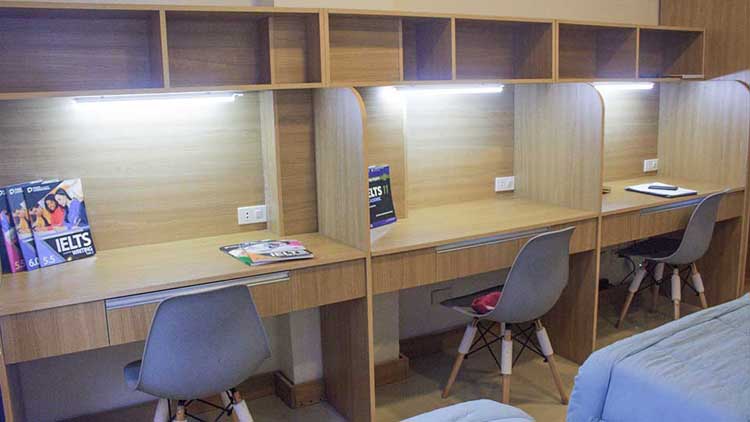 PINES 奎山校区所在的酒店内,British Council指定的IELTS官方考场将在今天9月正式运营,每个月将组织一次IELTS官方考试(学员如需参加考试,需在考试日期前2周在学校提出报名申请);奎山校区同时也是ETS指定的TOEIC考试官方考点,每月安排一次考试(学员如需参加考试,需在考试日期前1周在学校提出报名申请)