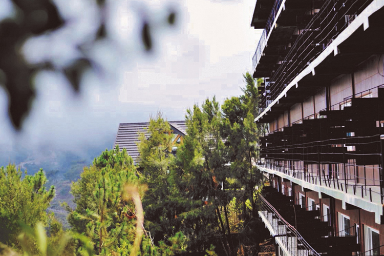 位于山顶,四周群山环抱,树木葱郁,有着美丽的风景于眼前,惬意的学习环境。
