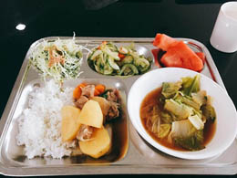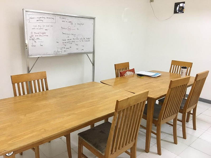 学校供应的餐点混合日、韩、中、西式,多元异国料理不单调。学校建筑前身是商业大楼内的饭店故地理位置优越,紧邻JY Mall,并且楼下即是超市、7-11、咖啡馆、麦当劳、出租车站、按摩中心、换汇商及各式美食餐馆,生活机能十分便利。24小时保全确保学生的安全。