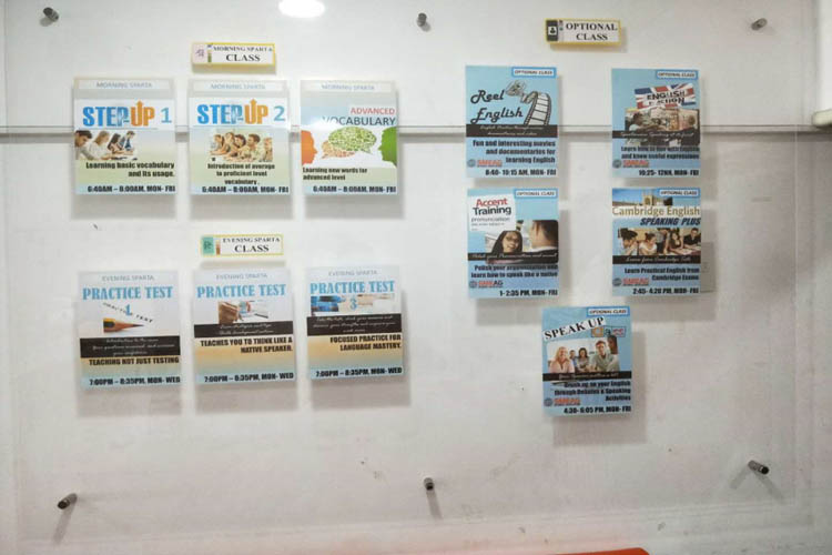 学校有三个校区,ESL,雅思,托福,也体现了学校的专业性。是菲律宾最大规模的学校,总人数达到1000多人,并与国际公认机构(英国文化院,ETS.ACT ES)合力,于全球90多个大学,企业合作,提供最好的英语学习环境。SME 斯巴达校区是专业教授ESL的校区。