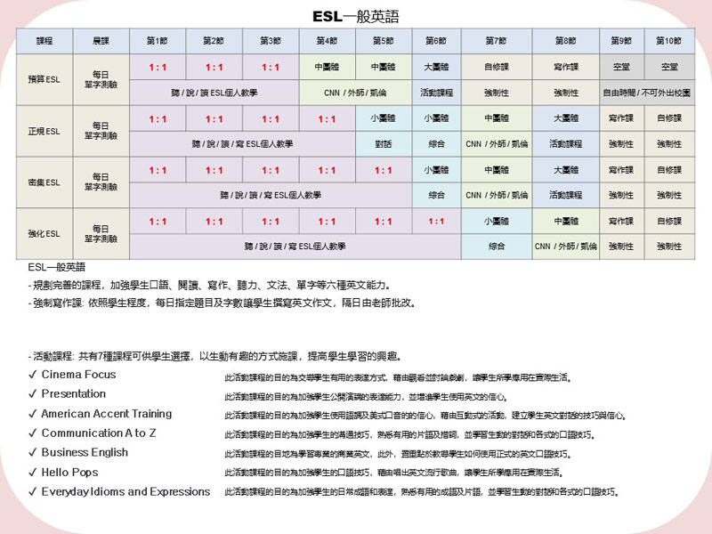 周五:每课时45分钟。 每两周进行一次演讲比赛。
