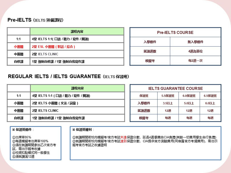 CIA的团体课内容非常丰富,比如演讲、美式发音训练、电影焦点、音乐、流行的英语词汇或商业英语等活动。 学校也严格执行EOP (English Only Policy)制度,帮助学员创造良好的英语学习环境。
